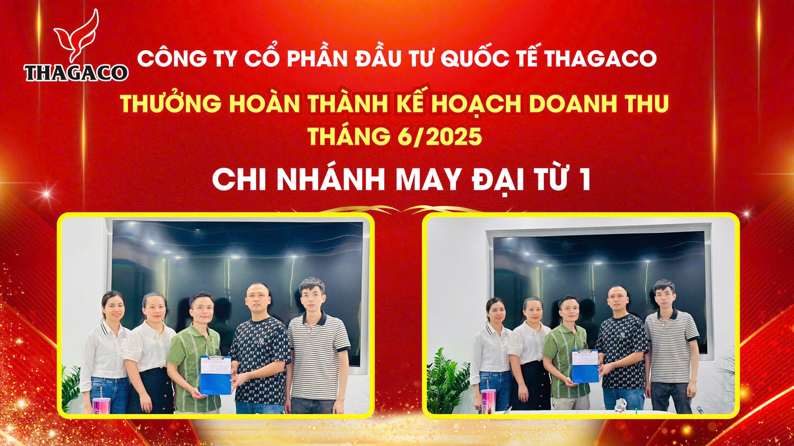 Chúc mừng tập thể Chi nhánh Thagaco Đại Từ 1 đã xuất sắc hoàn thành chỉ tiêu doanh thu tháng 06/2025, góp phần quan trọng vào thành tích chung của công ty! 💪 🌟 Kết quả này không chỉ là con số, mà là thành quả của tinh thần trách nhiệm, sự đoàn kết và nỗ lực bền bỉ của từng thành viên trong Chi nhánh. Dù gặp nhiều khó khăn, các Đồng chí vẫn giữ vững phong độ, bứt phá đúng thời điểm và về đích ấn tượng ! 🌈 Hy vọng thành tích hôm nay sẽ là động [...]