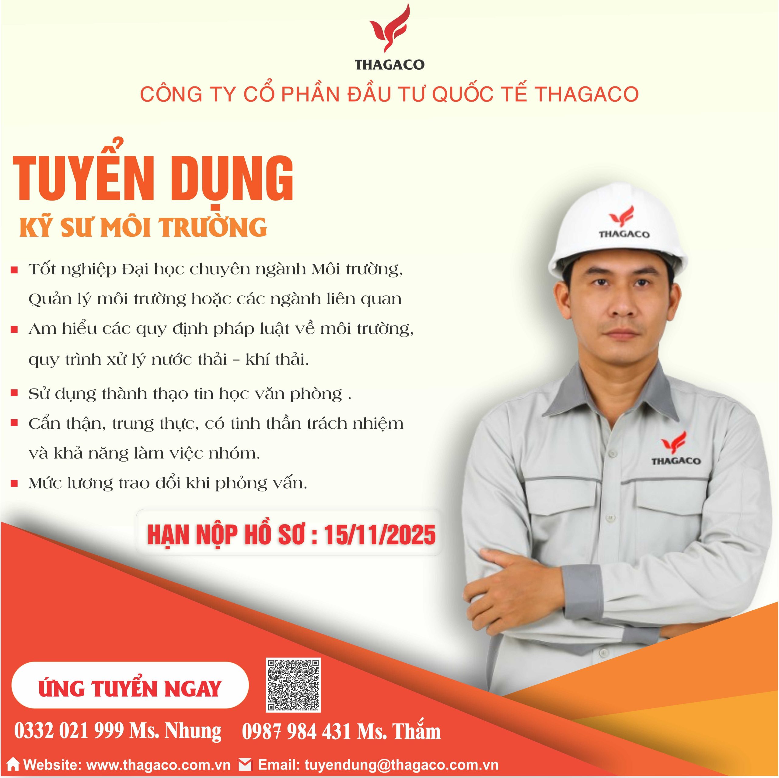 📆CÔNG TY CỔ PHẦN ĐẦU TƯ QUỐC TẾ THAGACO – TUYỂN DỤNG KỸ SƯ MÔI TRƯỜNG 🌿